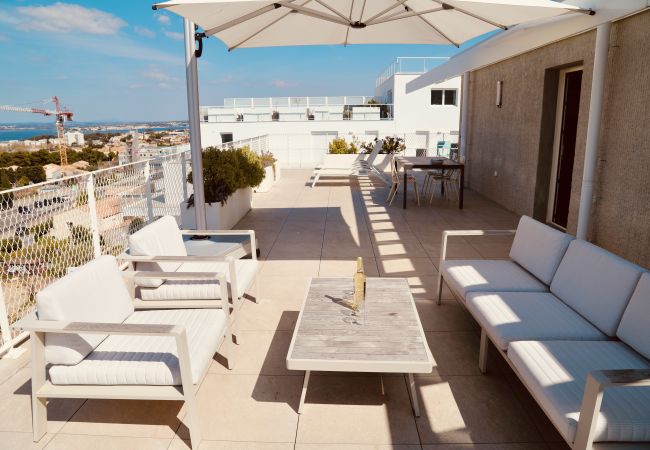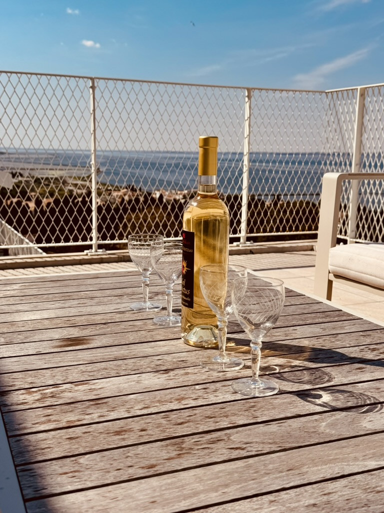 Enjoy a relaxing stay in Sète in this beautiful duplex apartment located on the 5th floor of a high-end residence, with open views over the Thau lagoon and its iconic oyster beds.