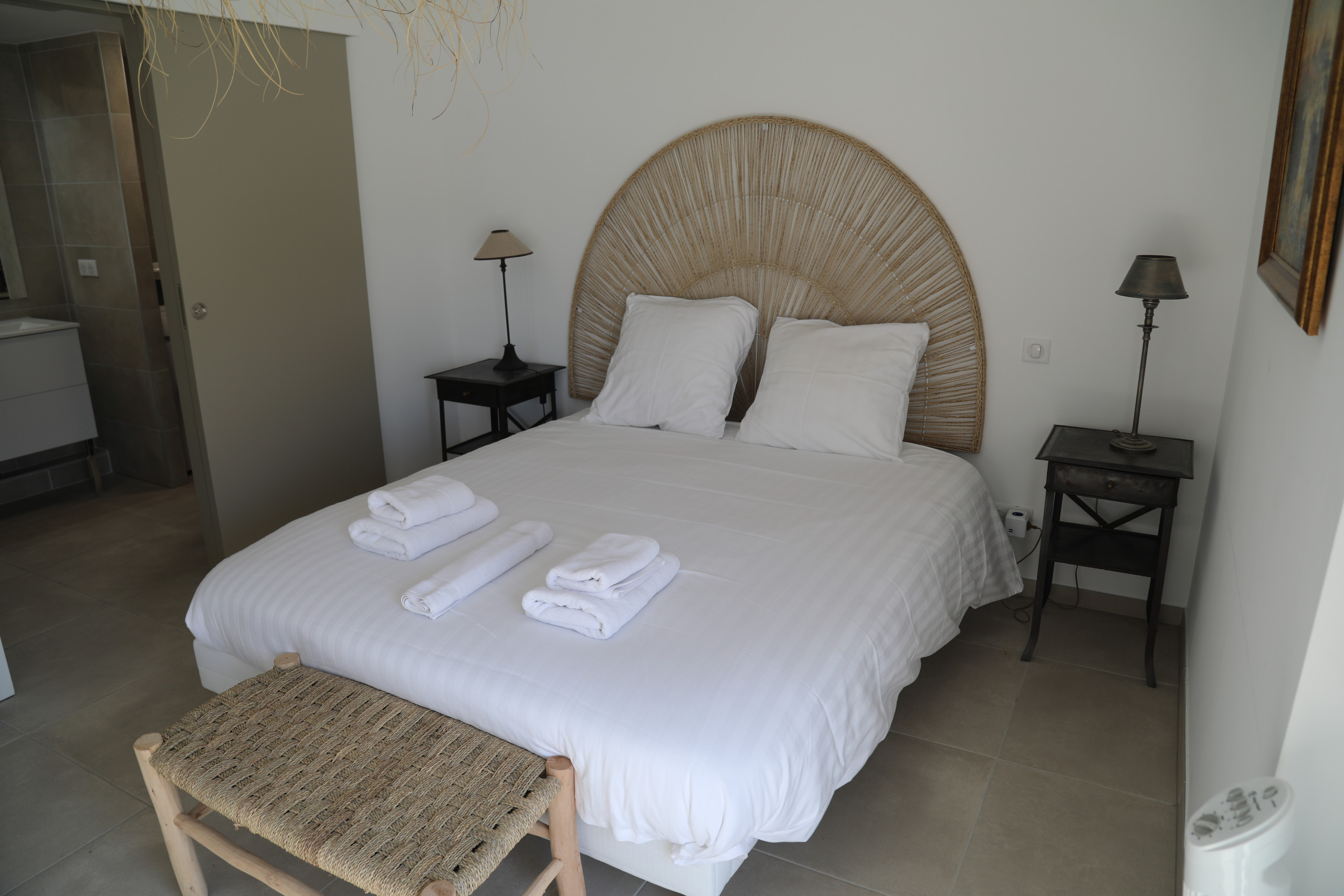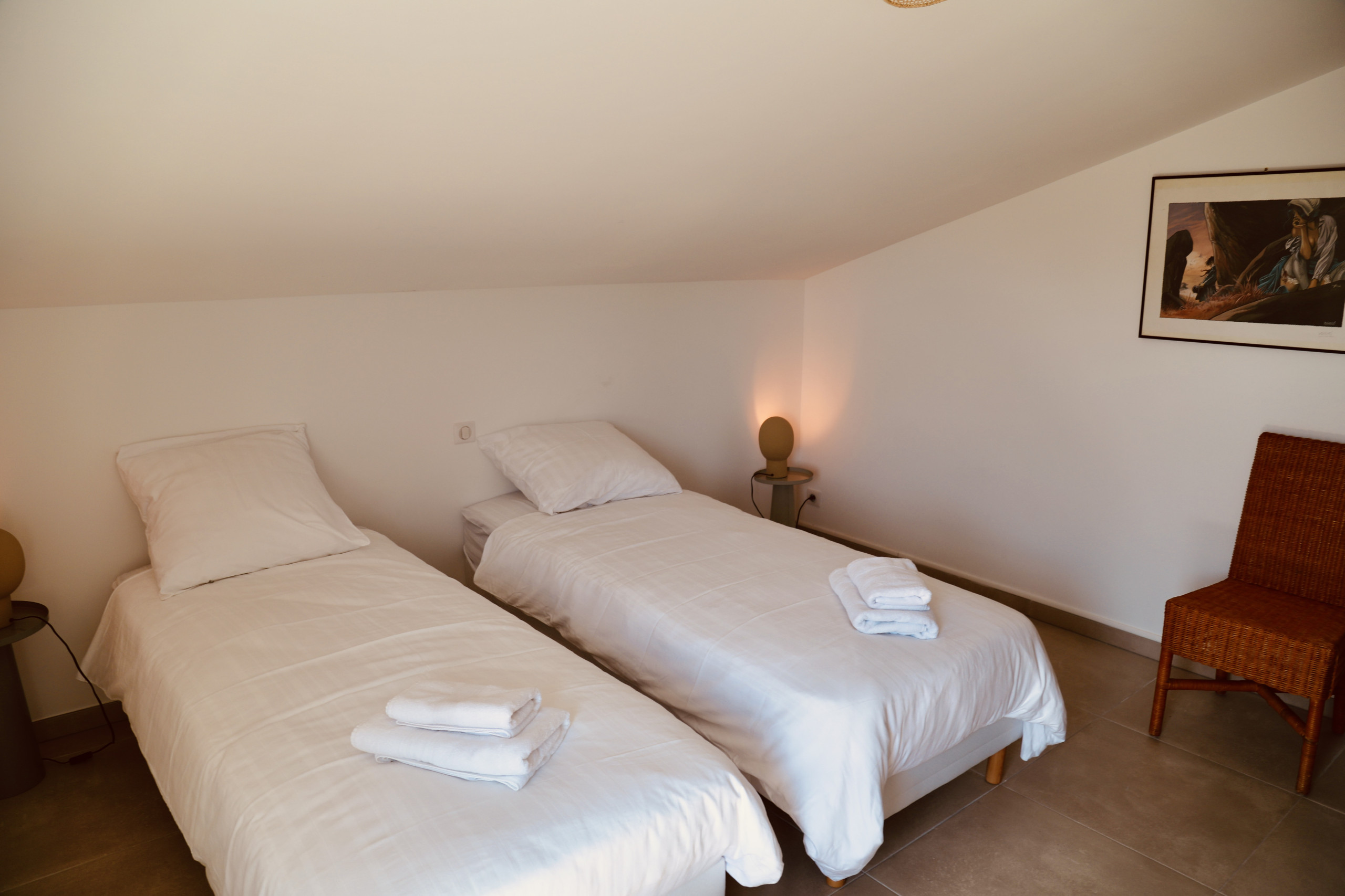 Designed to accommodate up to 6 guests, the apartment offers a bright, elegant and comfortable setting, ideal for a family holiday or a stay with friends. It features 3 bedrooms, including a master suite, with quality bedding: 2 queen-size beds and 2 single beds.